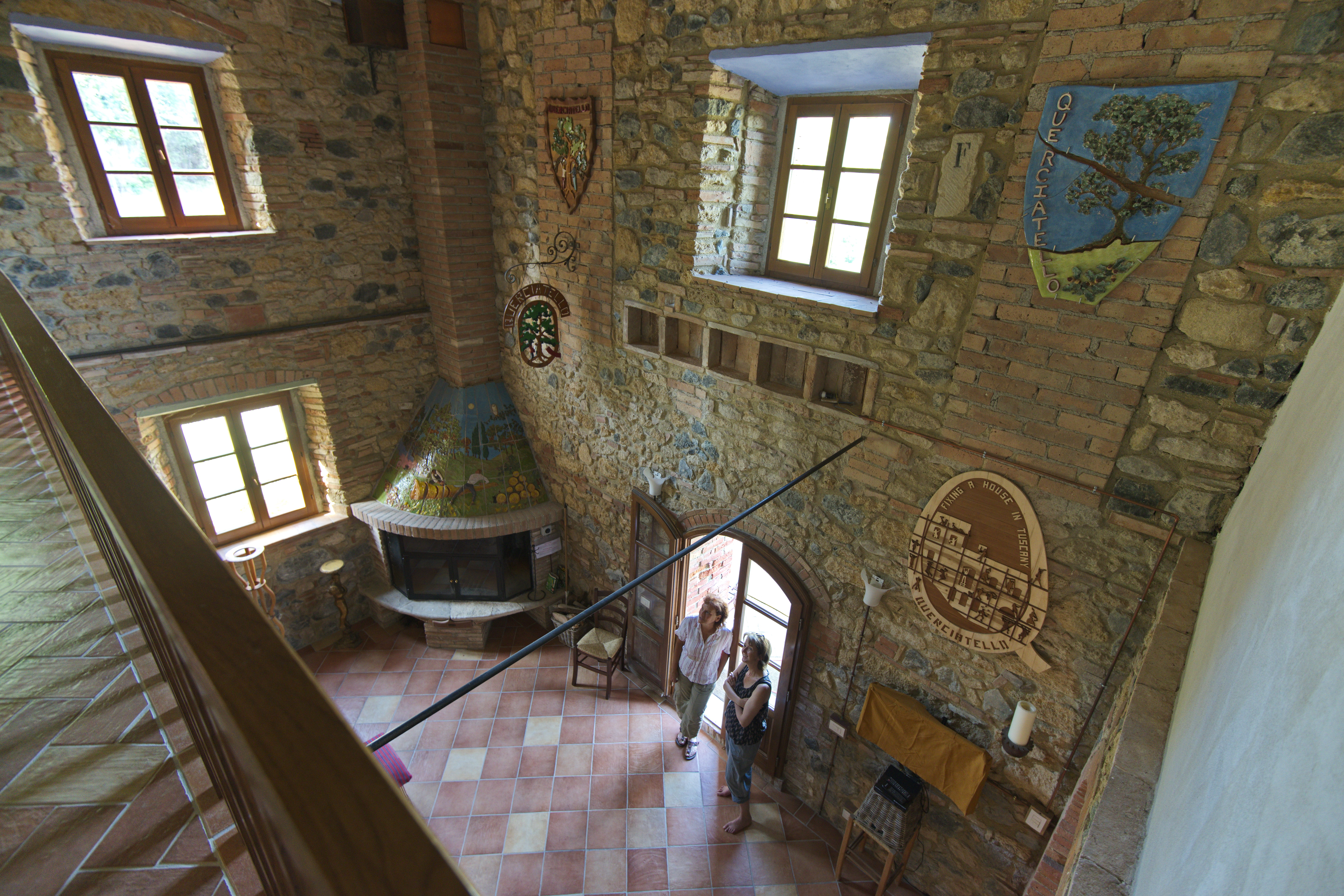 Querciatello is 600 m². It has two modern and well-equipped kitchens. One is large with ample cooking areas. The living room is two floors tall, with a balcony along the first floor & a big fireplace. The 100 m² party/activity room is ideal for weddings, parties or events with up to 50 guests or for yoga practice. It has a ping-pong table, exercise machine, table football and darts. This room has a large fireplace and is like an old monastery with columns and stained glass windows. There are 6 bathrooms & a guest toilet, 7 air-conditioned bedrooms with 7 double and 5 single beds. Further entrance, dining room, office area and laundry room.