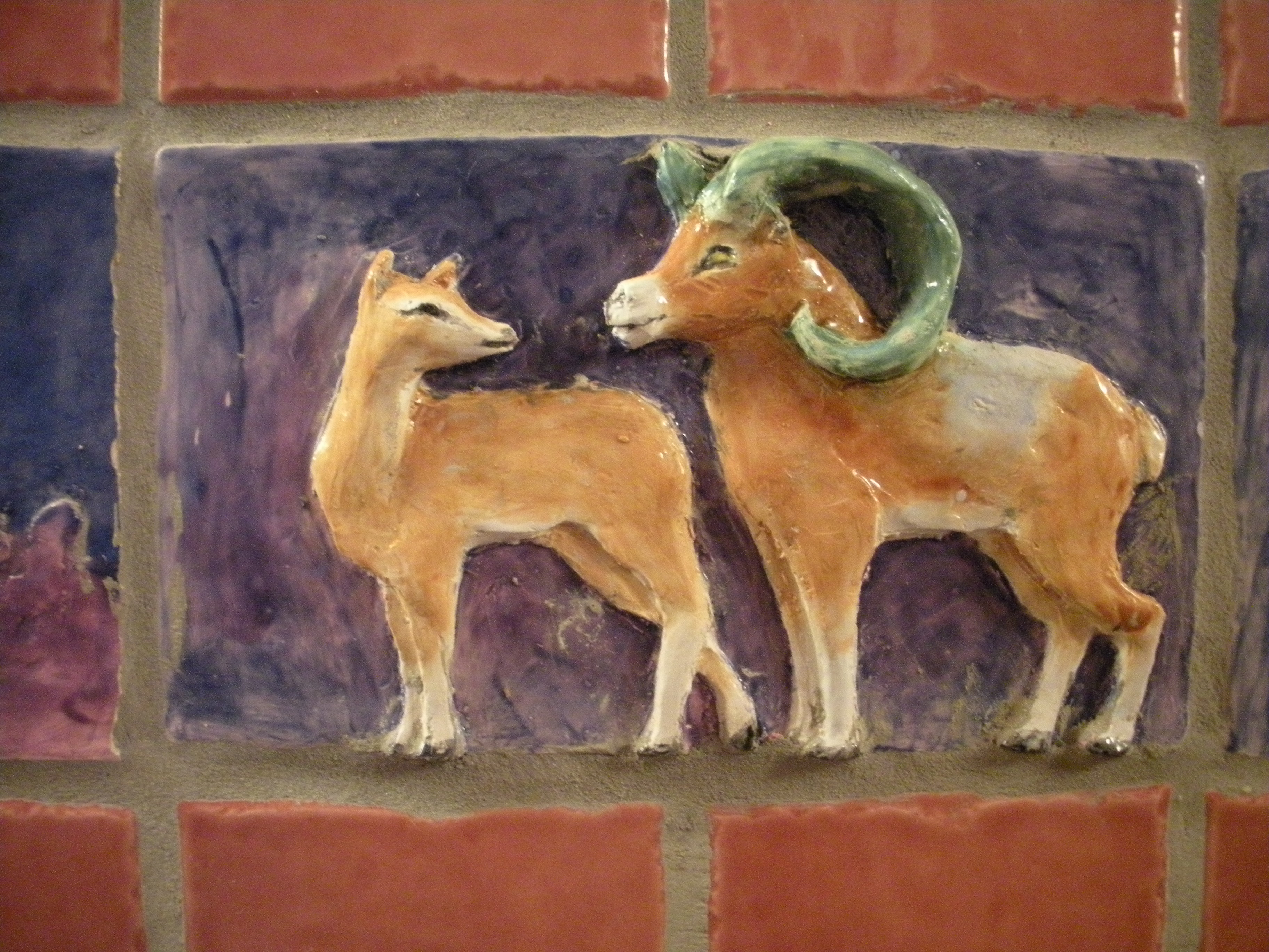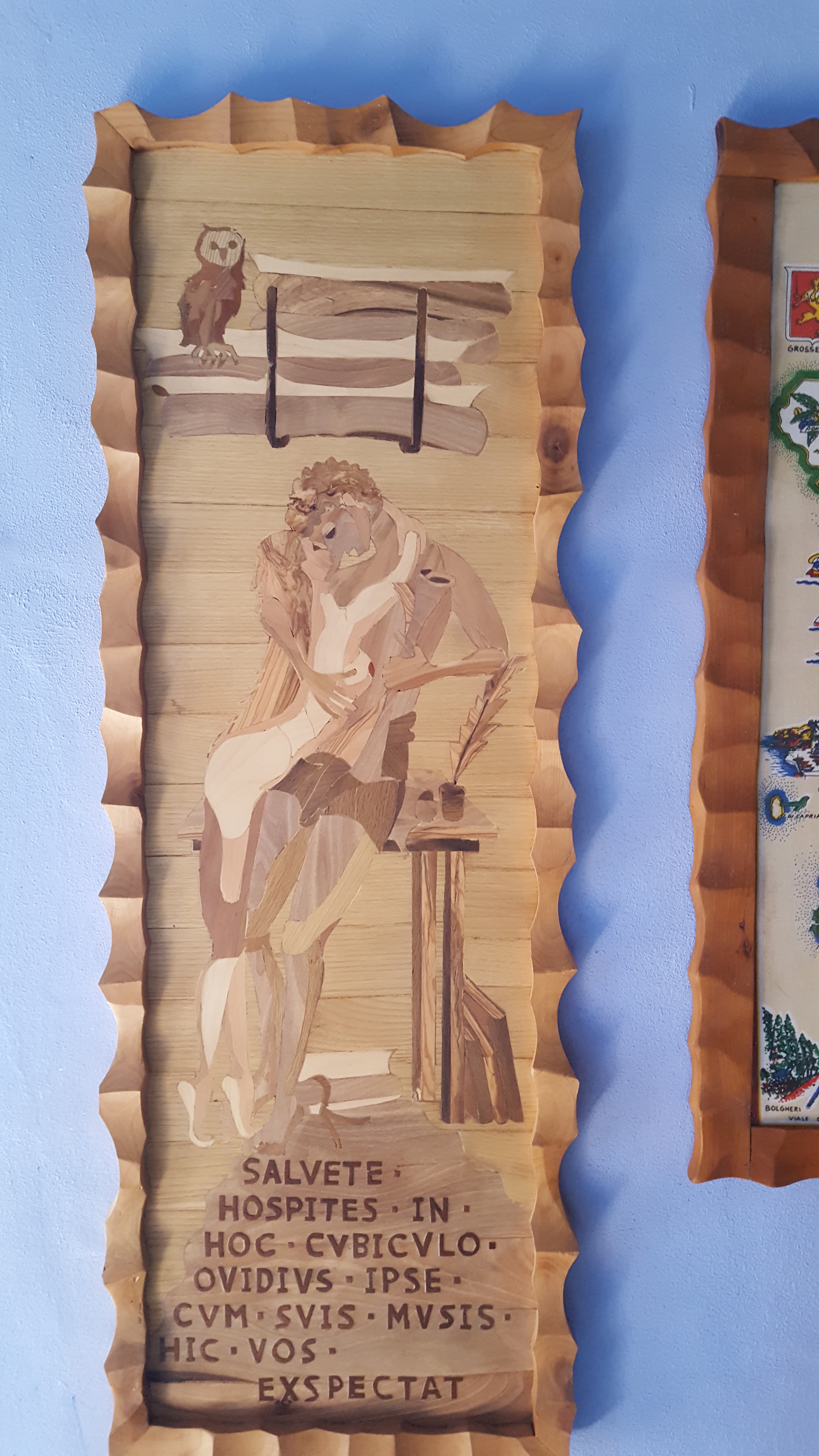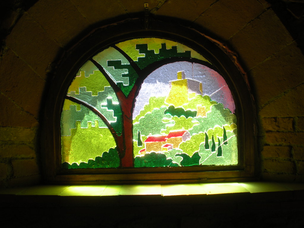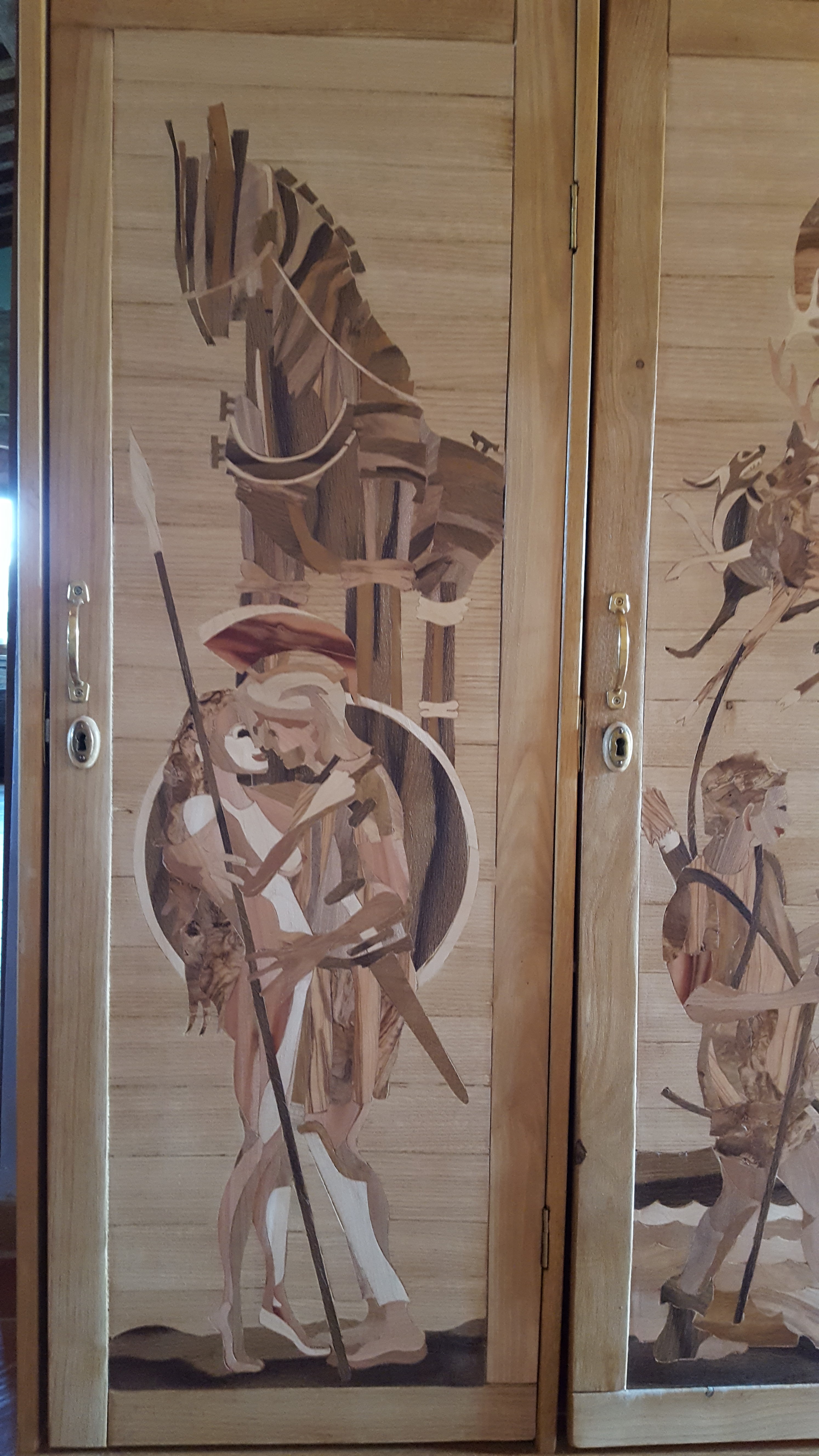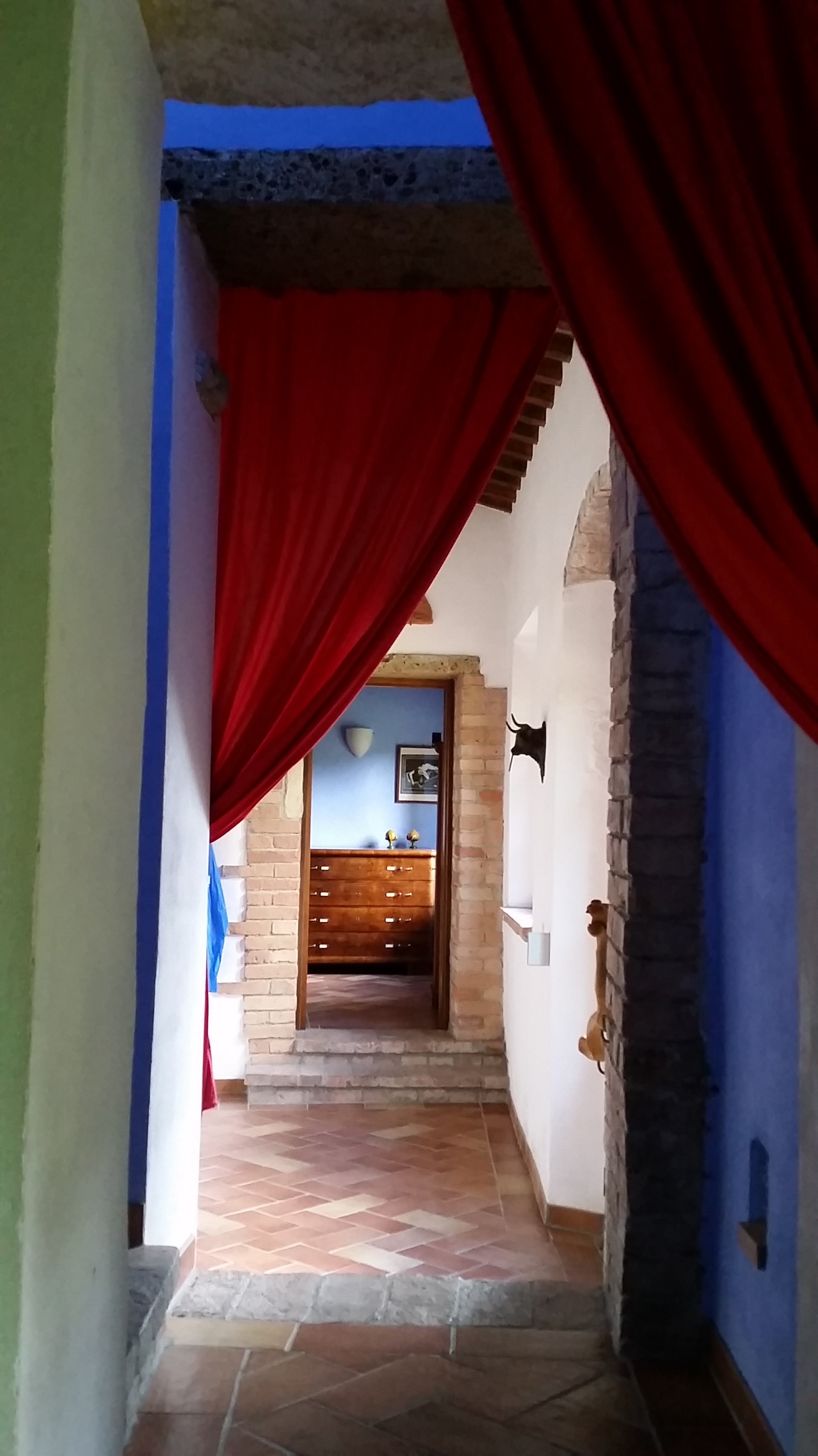 We chose Querciatello for its position and because of the unique and beautiful stonewalls. The walls are built of a combination of four types of stone and reused bricks and this building style is only found on our hill. The materials and decor chosen focus on warm tones and we have made our own furniture, woodwork, glass, ceramics and paintings specially for Querciatello. We have used natural and rustic materials to maintain the character of a Tuscan farmhouse without compromising comfort and modernity. The art work is on different themes, for example; in the living room, a collection of “coat of arms” inspired by Tuscan town halls, in the bathrooms ceramic borders with wild animals from our area and for the office and corridor we have made furniture with inlayed wood motives inspired by Ovid’s Metamorphosis.
